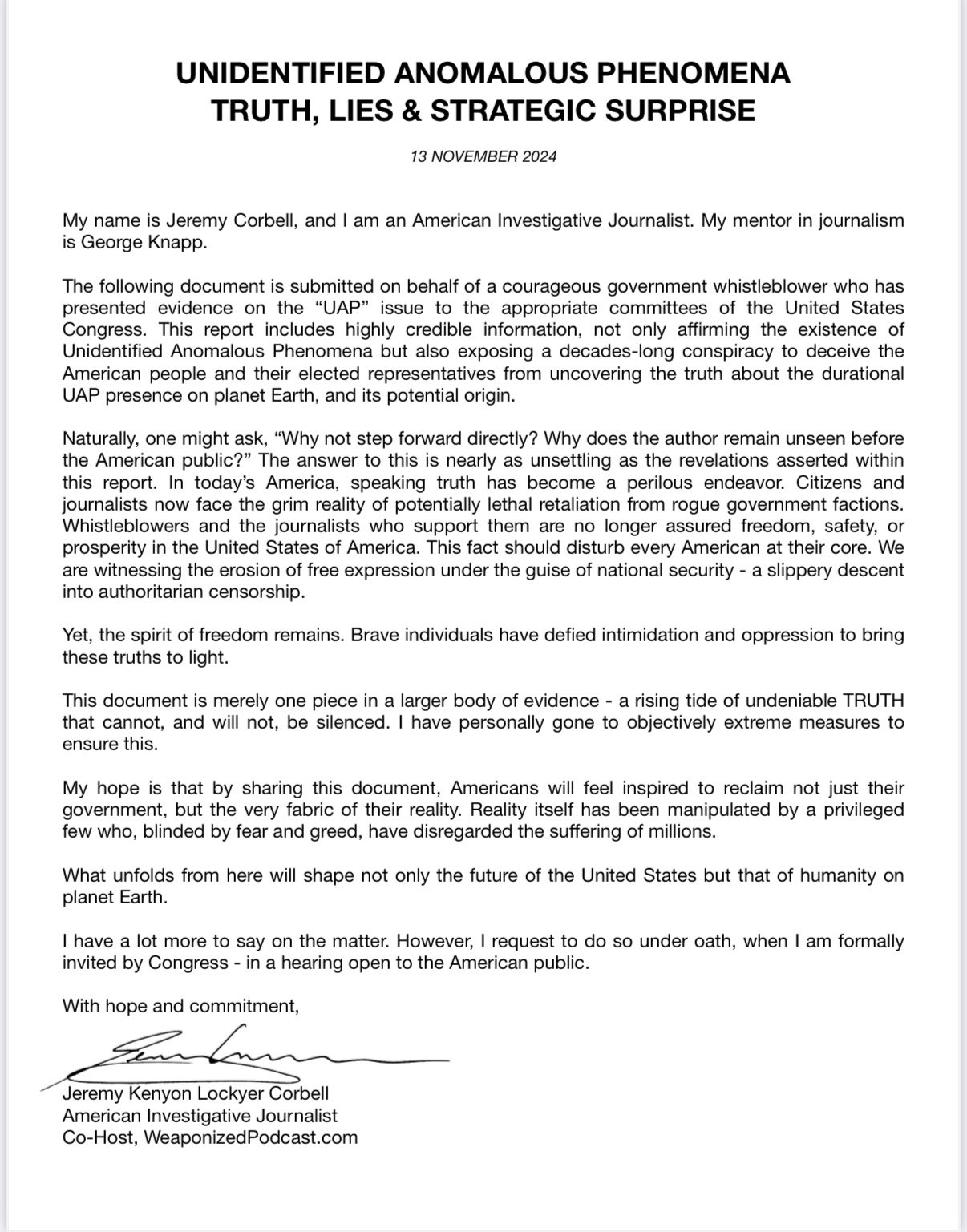 - Mr. Michael Shellenberger; Founder, Public (PDF via The Black Vault) Anomaly Archives Page